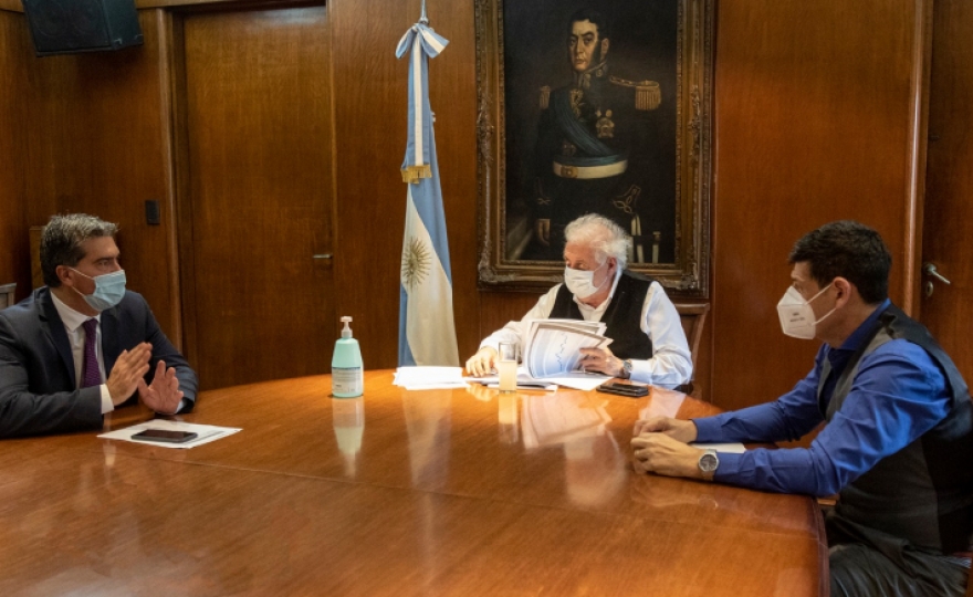 Tras la reunión con el ministro Ginés, el gobernador, junto al ministro de Desarrollo Social de la Nación, Daniel Arroyo, y acompañado por el presidente del Instituto de Desarrollo Urbano y Vivienda (IPDUV), Diego Arévalo, suscribió un convenio para la aplicación del programa “Potenciar Trabajo” destinado a recuperar la generación de empleo en el marco de la pandemia Covid-19.