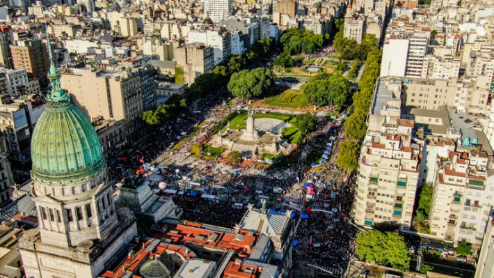 A pura danza, con distancia social y tapabocas, una multitud marchó por Avenida de mayo hacia el Congreso de la Nación con varias consignas como bandera