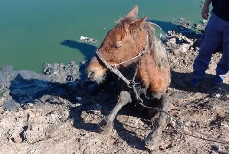 Según la misma, un caballo se encontraba atrapado en una represa lindante a la calle Pellegrini al 1.550 y no podía salir por sus propias fuerzas.