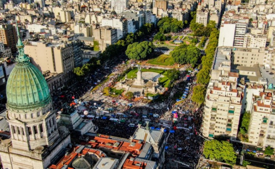A pura danza, con distancia social y tapabocas, una multitud marchó por Avenida de mayo hacia el Congreso de la Nación con varias consignas como bandera